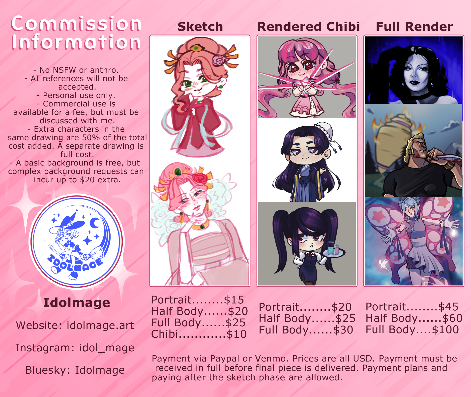 DM me through any of my socials or in-game if you see me advertise there! I do contact primarily through Discord, Instagram, Bluesky, or email.